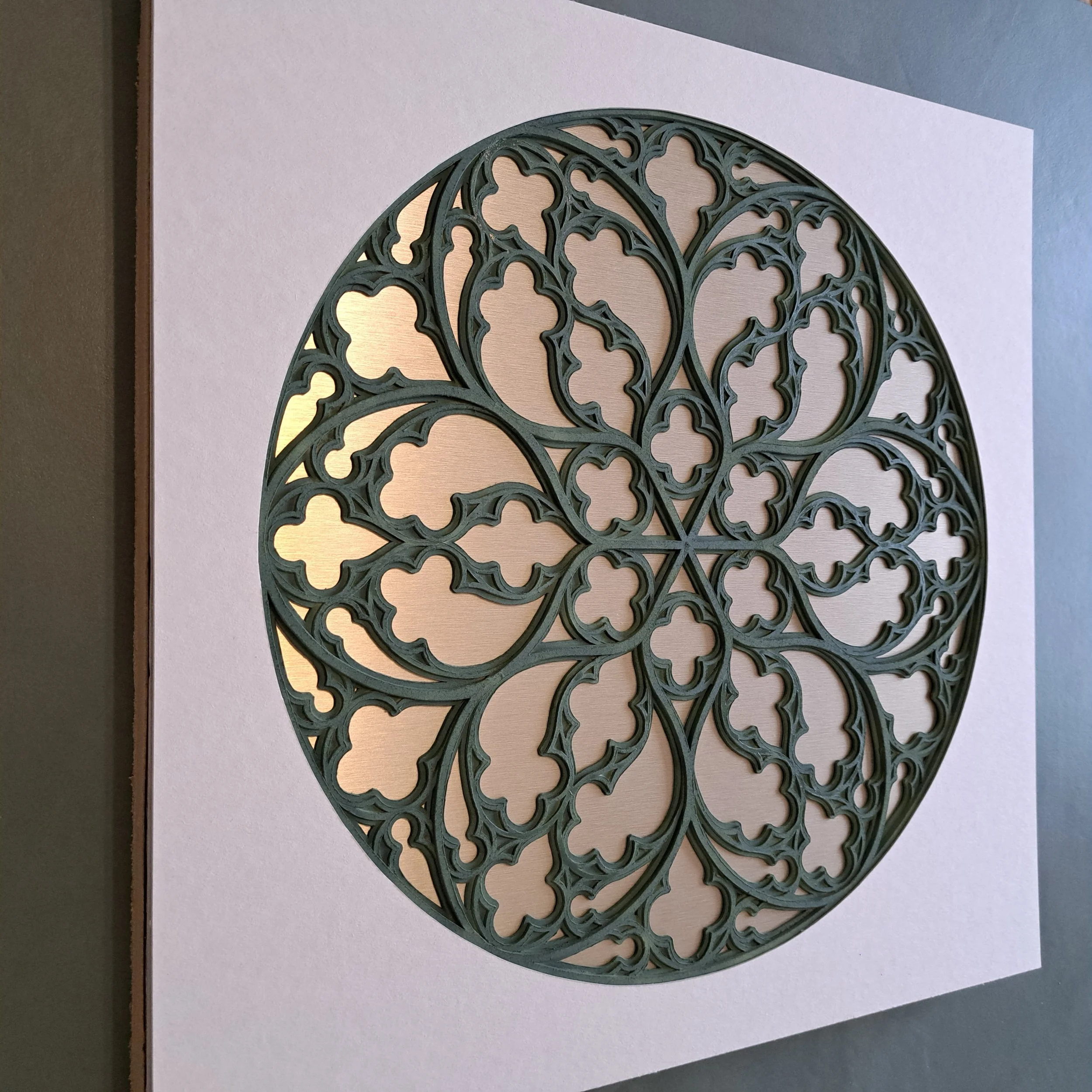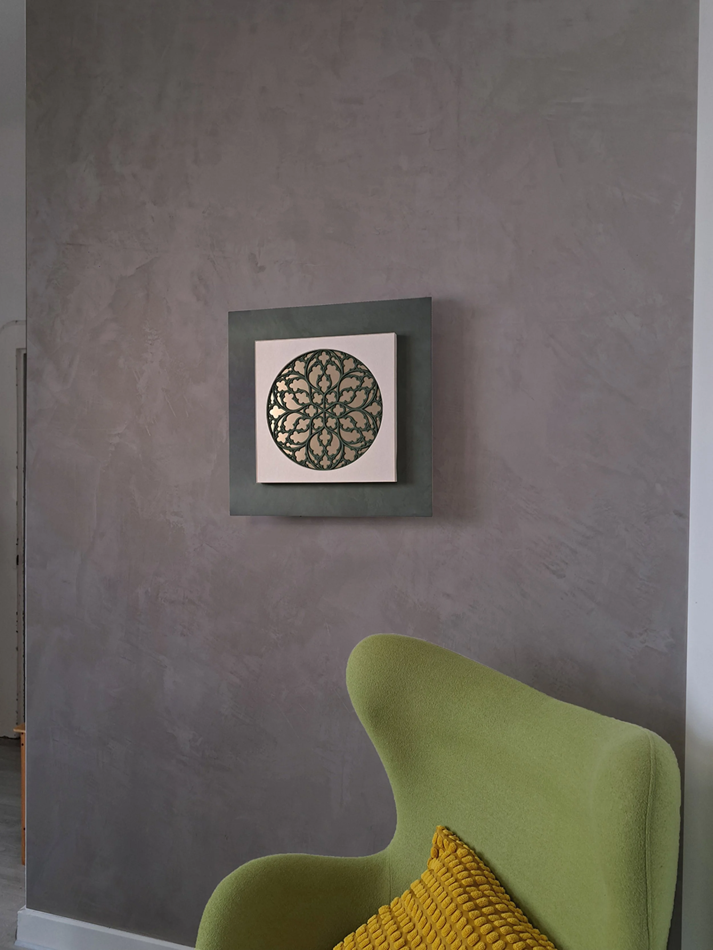 Medieval Light Size: 60x60[cm]Material: paper, brushed metal, tileTechnic: handmade layered papercutPrice: 1.500 EUR